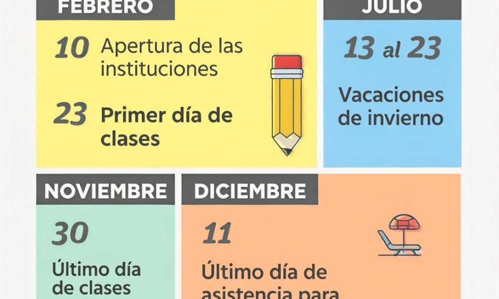 - Inicio de actividades docentes y directivas Lunes 9 de febrero de 2026: Presentación obligatoria de directores y docentes en las instituciones educativas.